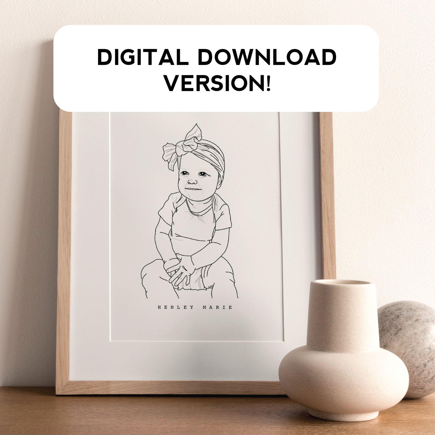 Personalized Baby Portrait Print | DIGITAL FILE - Custom Line Drawing from Your Photos